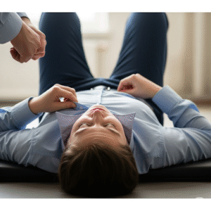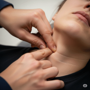 Động tác V: Nếu vết thương không đặt Garô được ( như nách, cổ..) dùng ngón tay ấn chặt lên mạch giữa tim và vết thương.