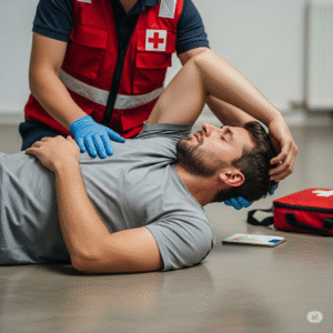 Động tác I: Để nạn nhân nằm nghiêng, mặt hơi ngước lên cho dễ thở và thoát đàm dãi